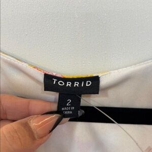 Torrid high/low dress with vibrant floral pattern. Features pink and yellow hues. Ideal for springtime, super soft 💯 Rayon