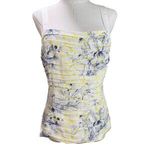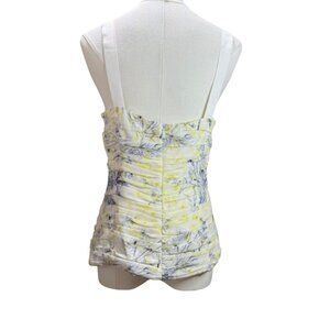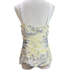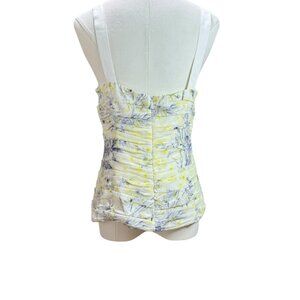 Cinq à Sept Floral Silk Bustier Top Size M – Ruched Yellow & Blue Camisole