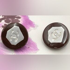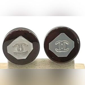 Stylish CHANEL clip-on earrings in rich brown. Features signature branding.