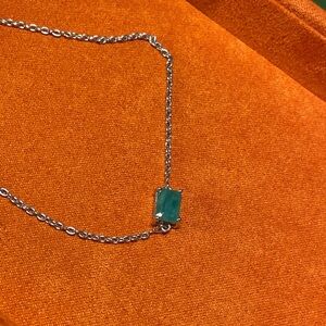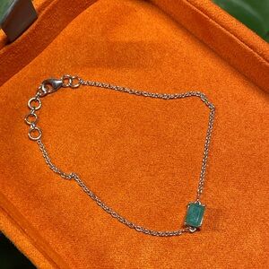 Brand new natural emerald gemstone bracelet in sterling silver. The bracelet is adjustable length from 6.75- 7.5 inches, weighs a total of 1.8 grams, and is secured with a lobster clasp. The emerald is natural but is highly oiled/treated.