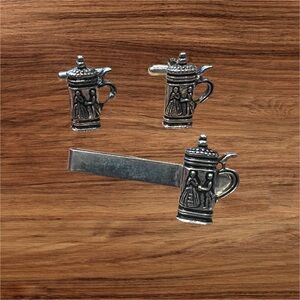 Vintage Collectible Beer Stein Cuff Links and Tie Bar.