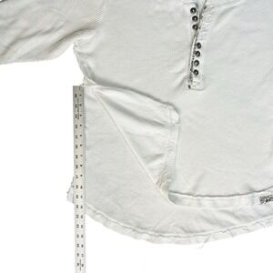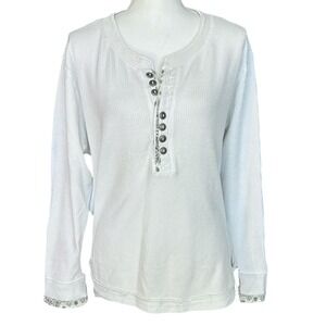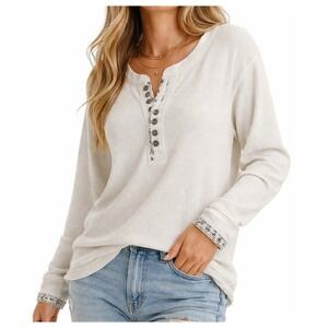 WE THE FREE Free People Waffle Knit Henley Top White Bandana Trim Women Small