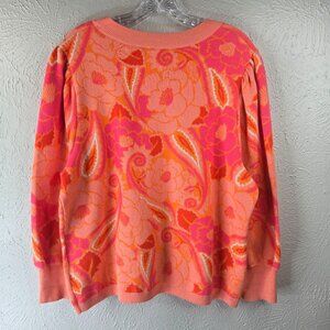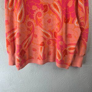 Farm Rio X Anthropologie Sweater Large Coral Paisley Floral Pullover Artsy Top