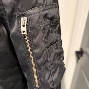IRO Mens Distressed Bomber Jacket Black Camo Size Medium - Brand New and Never Worn.