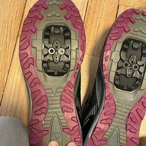 Step up your game with these stylish charcoal and purple mountain biking shoes from Pearl Izumi. Good pre owned condition, small wear holes in the heels, pictured. Women’s 8, but run small-fit more like 7.5. All items from a dog friendly, smoke free home and ship next biz day.