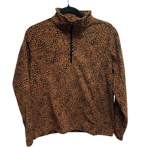 Lands End women’s fleece pullover sweater cheetah leopard print medium