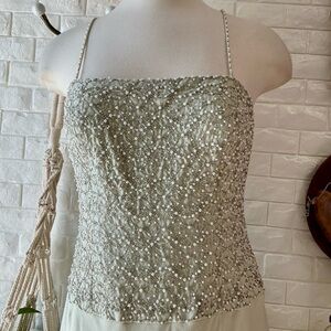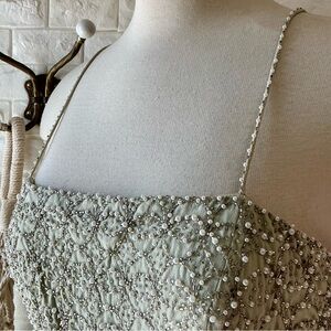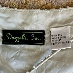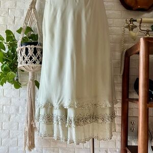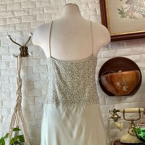 Vintage Dazzelle Inc 100% Silk Ornately Pearl Beaded Layered Chiffon Midi Dress, No Tag Size/Medium based on measurements—please refer to them below to ensure your preferred fit