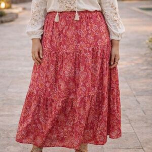 Soft Surroundings NWT 3X Cotton Gauze Maxi Skirt Moroccan Tapestry Pink Boho