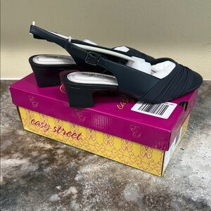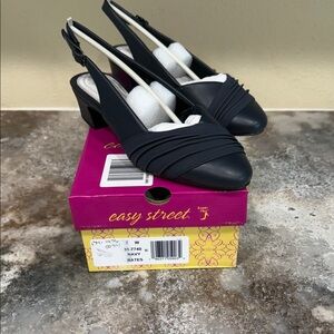 Chic dark blue slingback heels by Easy Street. Ideal for stylish outings.