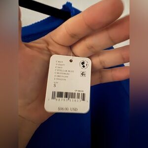 Stylish short sleeve tee. Vibrant blue with cream accents. Perfect for casual wear.