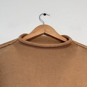Frank & Eileen Womens L Camel Tan Cotton Rolled Funnel Neck Sweater Made in USA