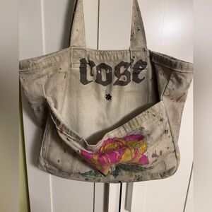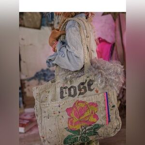 Magnolia Pearl BAG 096-ASH-OS Hand-Painted Rose Tote Bag