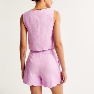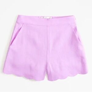 A&F Linen & Cotton Scalloped High Waist Shorts Pockets Feminine Sweet Summer