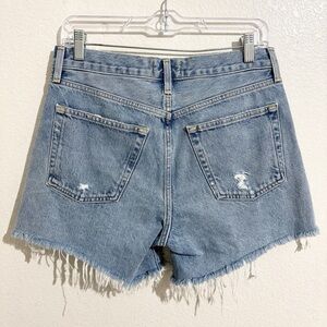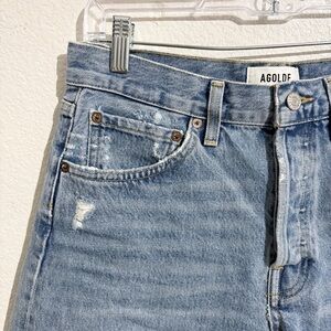 The Parker Long reimagines Agolde’s iconic short with a slightly longer inseam and a high-rise waist for an easy, relaxed fit. Rendered in a light vintage indigo wash, it channels the look of true heritage denim with a soft, sun-faded feel. Crafted from rigid non stretch 100% regenerative cotton denim with a soft hand, it maintains a crisp structure while offering all-day wearability. Simple yet elevated, it pairs effortlessly with everything from casual tanks to polished tops. In like new preowned used condition with no signs of wear.
