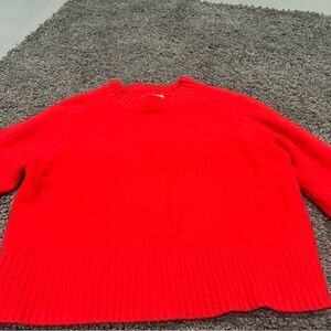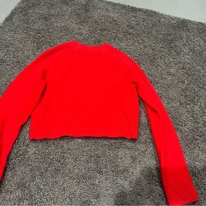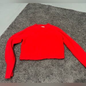 Bold red sweater with a classic crew neck. Perfect for adding a pop of color. Cropped and hits right at the waist.