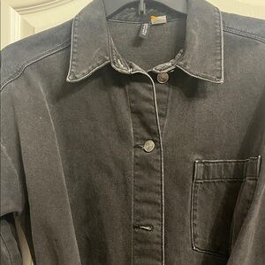 Stylish black h&m denim jean dress with a classic design. Perfect for casual or semi-formal occasions.