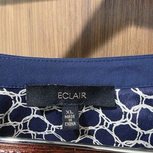 Stylish and comfortable, this blue and white geometric print top is perfect for any occasion. The elegant design adds a touch of sophistication to your wardrobe.