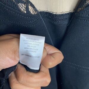 Ali & jay black & lace short dress small, preowned, no stains or tears, 80% rayon, 15% nylon, 5% spandex, lace-65% cotton, 35% nylon,