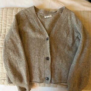 Elegant ribbed cardigan with button closure. Ideal for layering.
