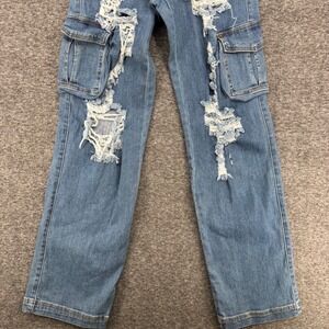 Aphrodite Distressed Cargo Jeans Womens 25 Medium Wash Shredded Straight Leg