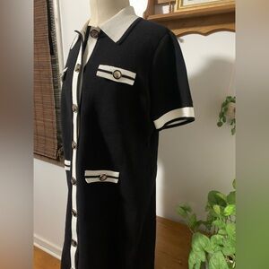 White House Black Market Mod Sweater Dress Black and White Mini Dress M 60s