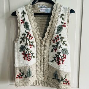 Bobbie Brooks Cream and Tan Embroidered Cardigan