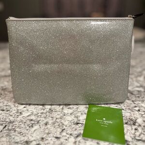 New Kate Spade Mavis Street Gia Glitter large pouch clutch. Approximately 10 x 7 in. Clean throughout. Please see all photos.