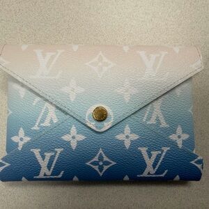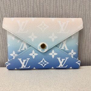 Louis Vuitton Blue Monogram 'By The Pool Kirigami' Pochette. Snap button closure. Open interior. Gold tone hardware. Tonal stitching.