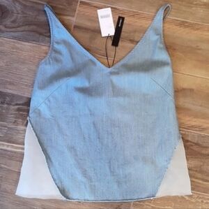 Super Duper Cute & Sexy NWT J Brand Chambray Denim Front Sheer Back Wishful Camisole Tank Top, Size XS