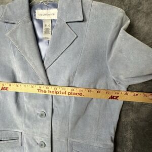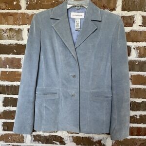 VTG Liz Claiborne Blazer Jacket Suede Leather Size S Blue Notch Collar Lined