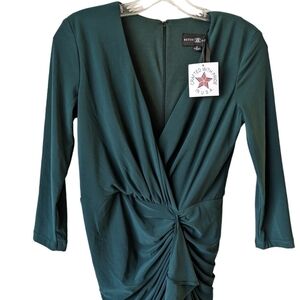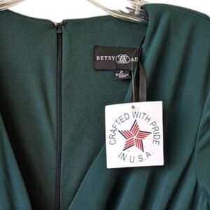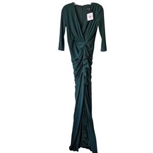 Betsy & Adam Cascade Ruffle Ruched Jersey Long Formal Dress Green 2 NWT