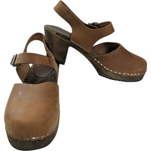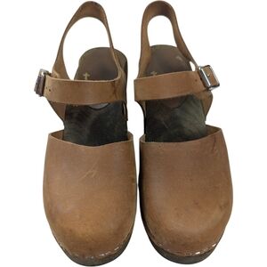 Wooden-soled clogs by Lotta from Stockholm. Brown oiled upper. Size 39 fits about an 8 - 8.5.