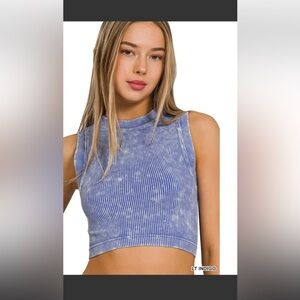 ZENANA STONE WASHED RIBBED SEAMLESS CROP TOP NEW LT INDIGO