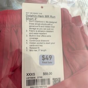 Lululemon Athletica Pink Dolphin Hem Running Shorts XXXS NWT