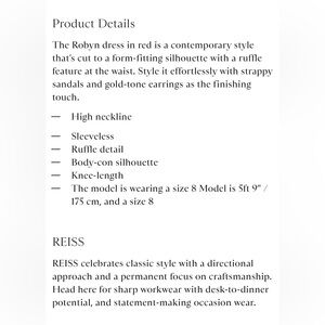 Brand new with tag REISS Robyn Ruffle Side Bodycon Dress. Color: Red. Size: U.S 6 ( U.K 10). Retail: $370. Paid $180 plus tax.