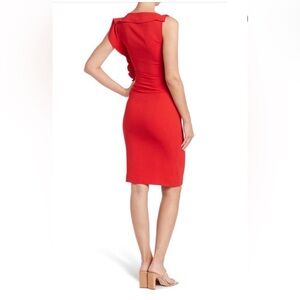 NWT REISS Robyn Ruffle Side Bodycon Dress In Red. $370