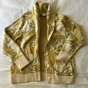 Stylish Maeve sweater with floral pineapple pattern. Features cream base with green and yellow accents. Cozy and fashionable. Very rare.