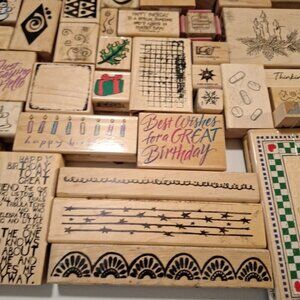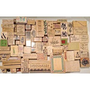 Wood Mounted Rubber Stamps Lot 85+ Holiday Christmas Birthday Various Designs