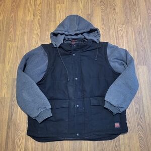 Tough Duck Men's 2XL Canvas Work Jacket – Black with Grey Cotton Sleeves D6