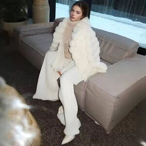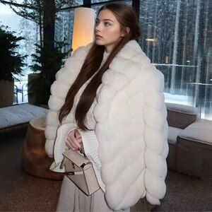 Luxurious white fur coat with a chic design. Perfect for winter fashion. 100% real fur coat. Highest grade fur, very thick and fluffy!