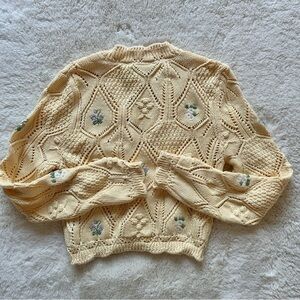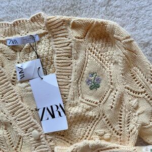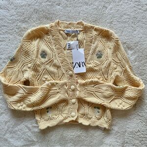 Zara Women's Yellow Cardigan Sweater with Flowers