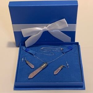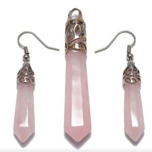 Earrings and necklace set Natural Rose Quartz crystal pendant with 925 Sterling Silver 17 inch chain