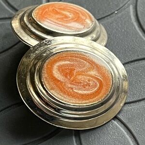 These chic silver and orange swirl earrings add a vibrant touch to any ensemble. Perfect for elevating your style with a pop of color.