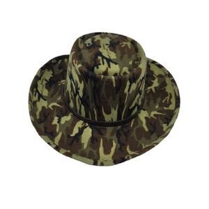Vtg Mens Hat Cowboy Safari Camo Hunting Adventure Core Cabin Core Green 7 3/8