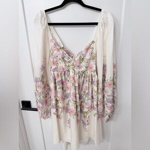 NWT Express Cream and Pink Floral Long Sleeve Dress