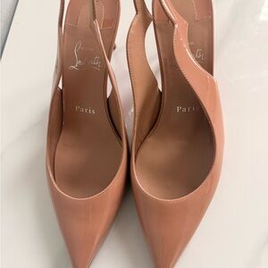 Chic slingback heels with a pointed toe. Signature red sole adds flair. Ideal for elegant outings.