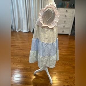 Shein striped dress. Multicolored color block. Textured. Ruffle trim sleeves. Women’s size small. Like new condition!