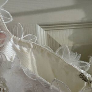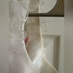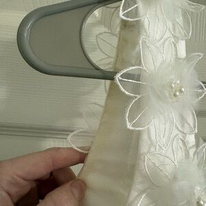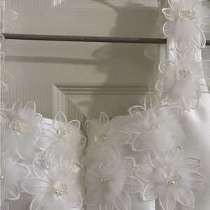 Please note there are some spray tan stains on the inside of the dress that are not visible from the outside of dress, and a few of the flowers are missing 1 or 2 pearls (see photos)