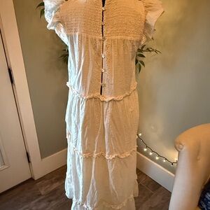 Cleobella Linda tiered midi dress size S. This dress is beautiful and the details make it so special, from the eyelet fabric, to subtle ruffle details and button-down backing, its the dress for everyone!