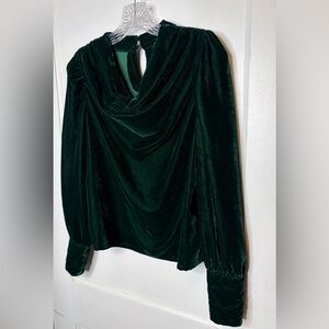 Rachel Zoe Velvet Drape Neck Blouse Top Dramatic Long Sleeve Emerald Green Sz S